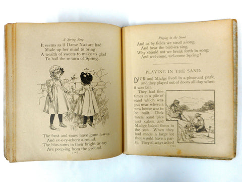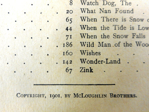Complete, beautiful color and black and white illustrations. Binding still holding, pages are clean, no stains. Hard cover children's stories book entitled "The Boy's Easy Word Story Book" signed McLoughlin Brothers, 1901, New York. Measures 10 1/4 X 8 1/2 inches.
