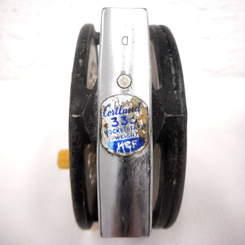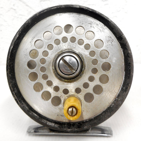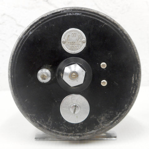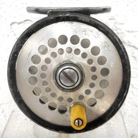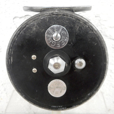 Excellent condition, signed Ocean City Fly Reels. Original paint and maker's tag, Bakelite handle knob. This is model 77 "Plymouth" made in the 1950's. Manufactured in Philadelphia since 1923. Ajustable drag and on off pawl switch. Works and looks great on bamboo and fiberglass rods. There is still some Cortland 333 rocket tape in it. Wheel only has a 2 7/8 inches diameter, case has a 3 3/8 inches diameter and a 1 3/8 in depth.