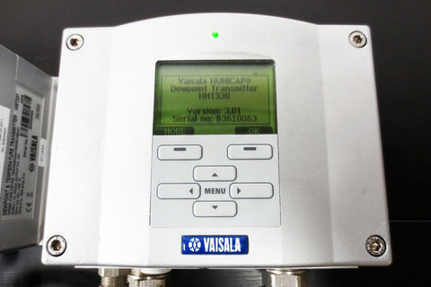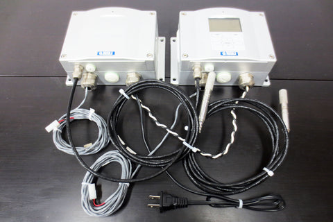 Fully functional, very clean, wired, plugs into a standard grounded outlet. Includes 2 interconnected Vaisala HMT337 Dewpoint & Humidity/Temperature transmitters. Each transmitter has its own Vaisala Power-1 internal power supply (120VAC to 24VDC) and one of them has digital display. Includes 2 temperature/humidity probes and the user's guide (209 pages pdf). High quality, made in Finland. Pre-owned and tested industrial surplus from a closing plant in Quebec, Canada. Minor surface scratches only.