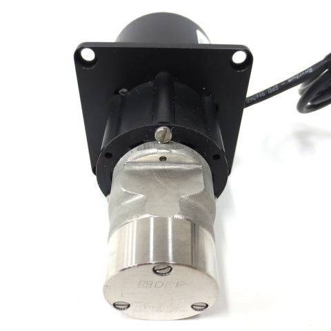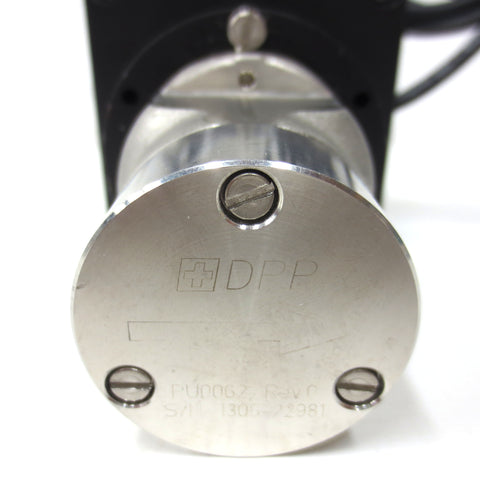 Fully functional, very clean, ready to use. Gear pump/micropump by Diener Precision Pumps DPP, model PU0062, extreme series. Pump is connected to a 24V motor by Premotec Netherlands, model 4322 016 58203. Unit is compact, 1 5/8 to 2 5/8 inches diameter, 6 1/4 inches long. Unit has a sturdy fixation bracket. Pre-owned and tested industrial surplus from a closing plant in Quebec, Canada. Minor surface scratches only. Limited quantity in stock.