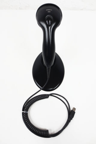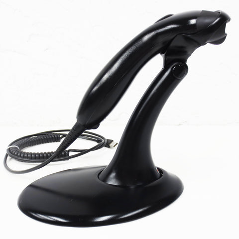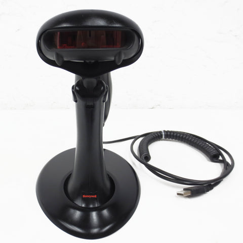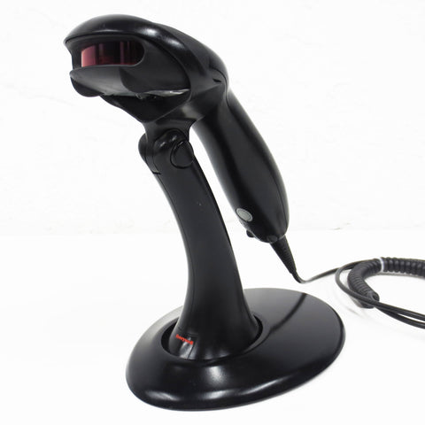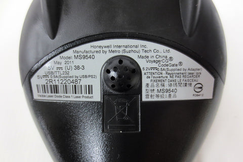 New, no box, original Honeywell stand and manual included (PDF). Perfect condition, tested and working. Handheld barcode scanner model MS9540 Voyager CodeGate by Honeywell. Scanner has a long USB cable and stand has a head that swivels.