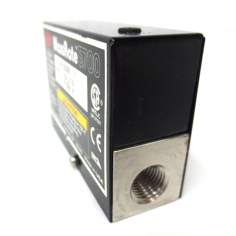 Fully functional, original tags, very clean. Installation and operation manual included (46 pages PDF). Electronic flowmeter by Brooks Instrument, model MassRate 5700. Flow range 0-20 liters/min. Up to 150 psig. Temperature limit 5 to 65°C. Power 11.5 to 15.5 Vdc, 50 mA. Model 5700AL2A1AA. Pre-owned and tested industrial surplus from a closing plant in Quebec, Canada. Minor surface scratches only.