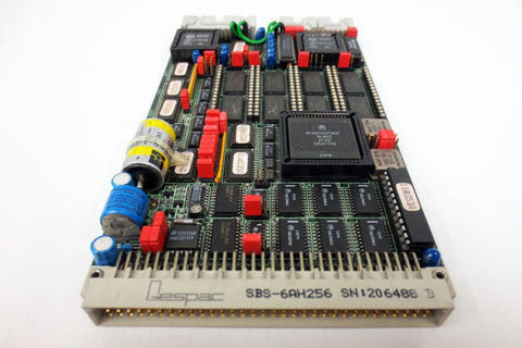 Like new, inspected and functional, no box. Dual serial interface board by Gespac, model GESSBS-6A 9016, SBS-6AH256. Serial 206488. Measures 6 3/4 X 4 inches. Surplus from a large aluminum manufacturer.