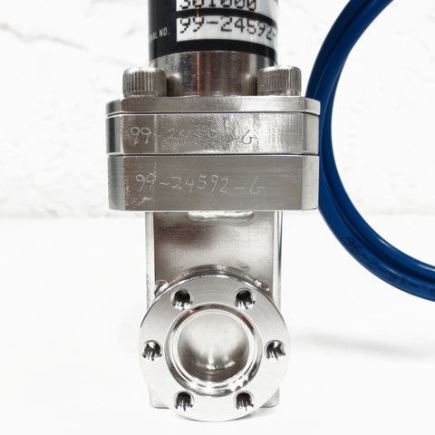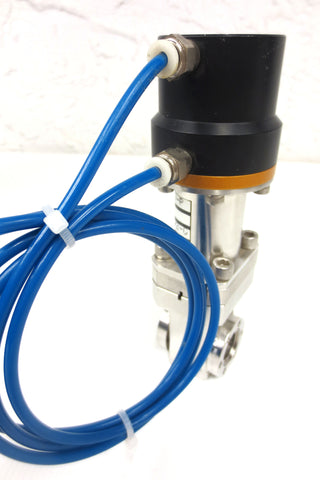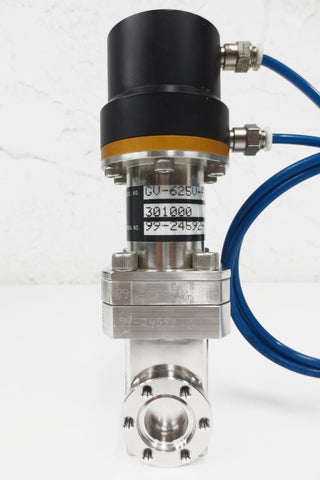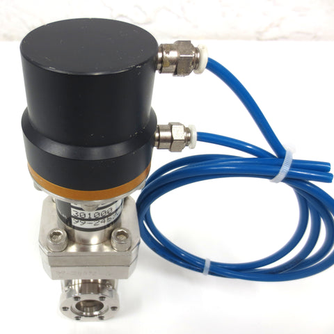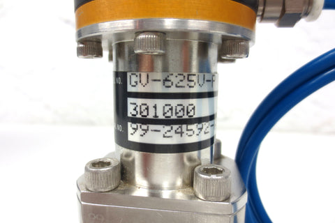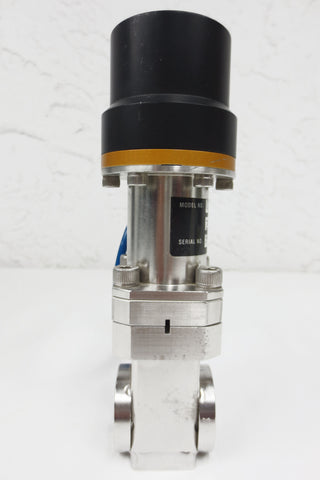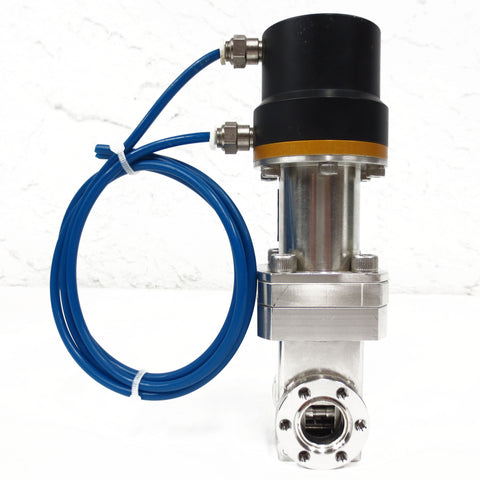 Excellent condition, functional, inspected and clean. HV pneumatic gate valve .625" by MDC Vacuum products, model GV-625V-P, part no. 301000, serial 99-24592-G. Tubes and connectors shown are included. Gate valve measures 6 1/4 X 2 X 1 1/2 inches and weighs 200 gr.