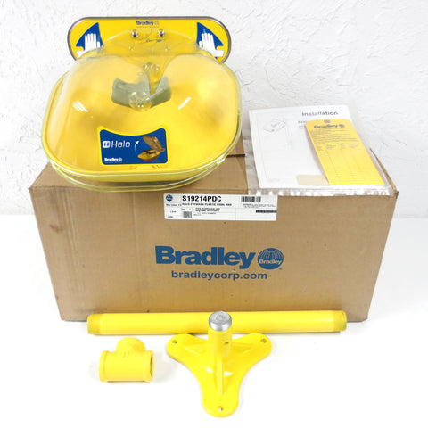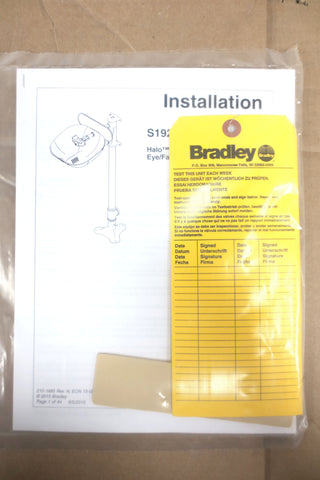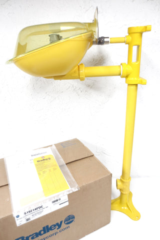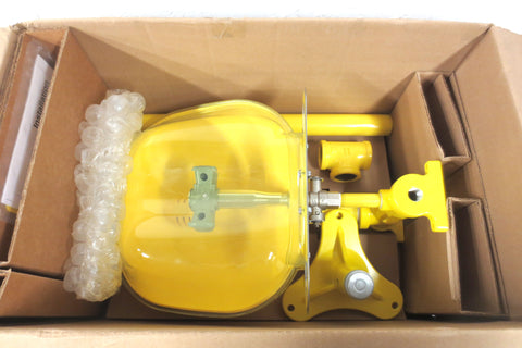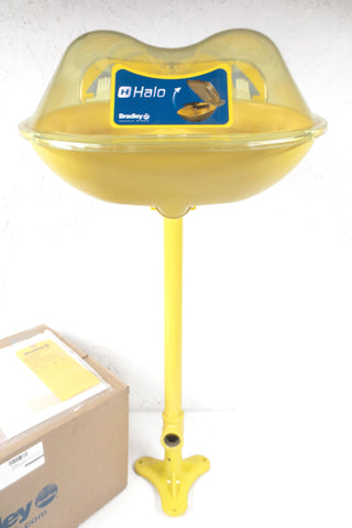 New with its sealed instructions, original box and tags. Never used, box opened for inspection and photos. Industrial eyewash station model Halo S19214PDC by Bradley. Station stands on a pedestal and measures 37" tall when assembled. 13" wide bowl with a see-through dome and a thick plastic sink. A shower head can also be added on top of it. Box size 25 X 13 X 15 inches, total weight 18 pounds.