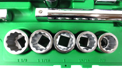 - 3/4" Drive 12 Point Sockets - 7/8", 15/16", 1", 1'1/16", 1'1/8", 1'3/16", 1'1/4", 1'5/16", 1'3/8", 1'7/16", 1'1/2", 1'9/16", 1'5/8", 1'11/16", 1'3/4", 1'13/16", 1'7/8", 2", 2'1/8", 2'1/4"