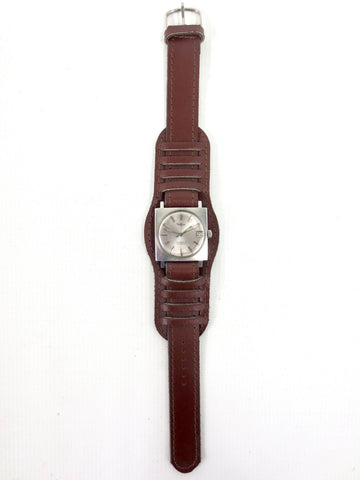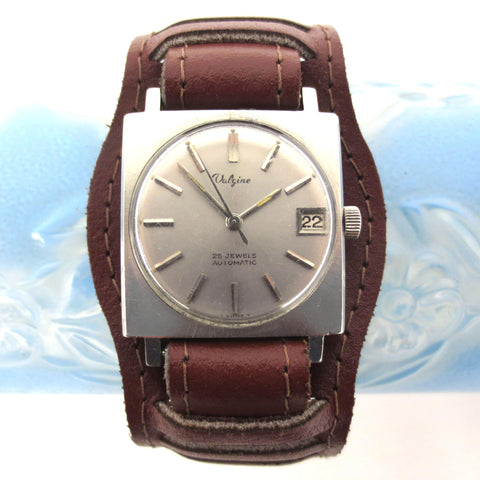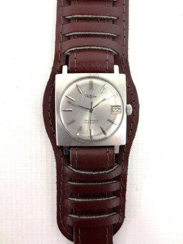 Rare Vintage Valgine Pressurized Automatic 25 Jewels Swiss Watch, 120 Feet 3 ATM, Date, Pilot Leather Band, Date, Square Case, Thin