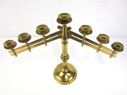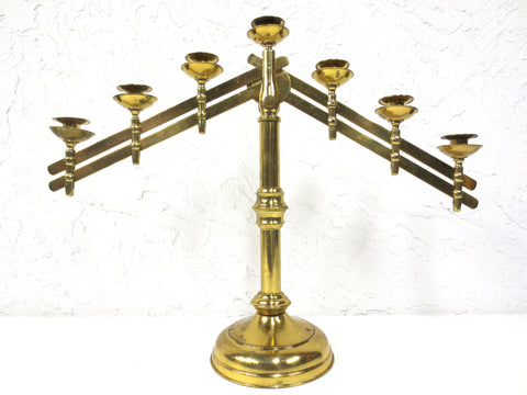 Excellent condition, very clean, all brass. Arms are easy to adjust up and down. Measure 24 inches wide, 25 inches tall with arms up, 19 inches arms down. From a closed down church in Montreal, Quebec, Canada.