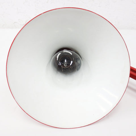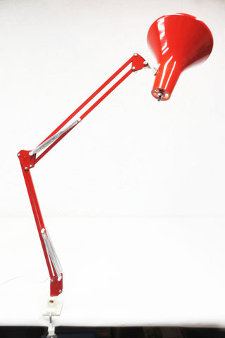 Vintage Mid Century Luxo Drafting Desk Lamp 31" Long Articulated Swing Arm, Bright Red, 6 3/4 Diameter