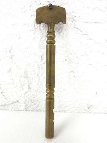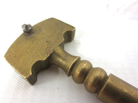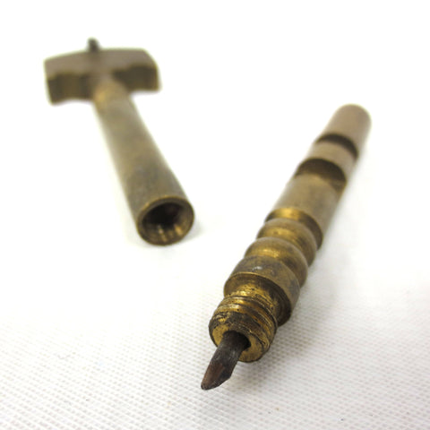Excellent condition, fully functional. This is an antique solid brass glass cutter with a hidden screwdriver in the handle. The screw driver was used to change the cutting wheel. Marked Made in Belgium. Used cutting wheel included. Measures 4 in high, 3/4 wide.