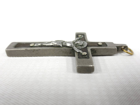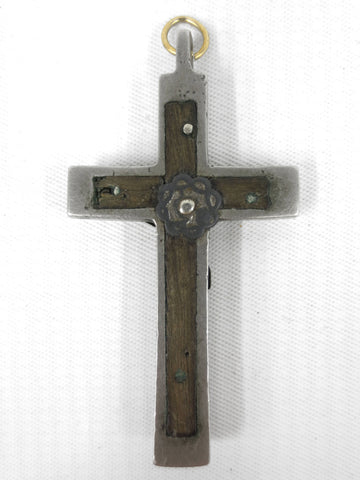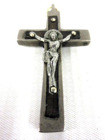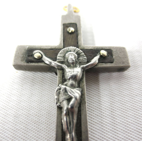 Authentic priest pendant crucifix found in Montreal, Quebec. Beautiful hand carved details, sterling silver with a wooden inlay. Measures 2 X 1 inches and weighs 9.9 grams.