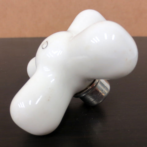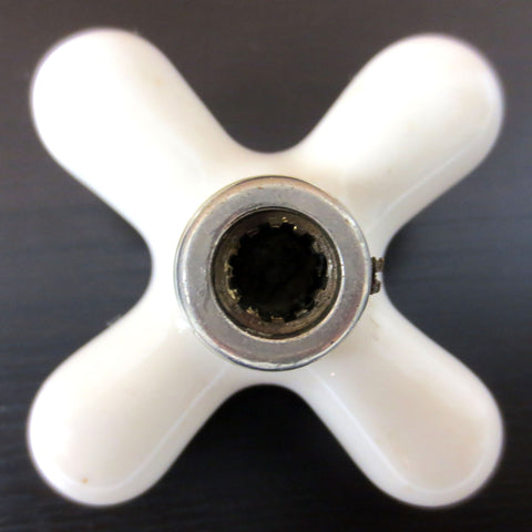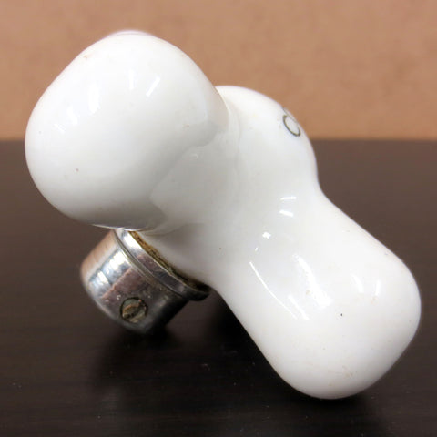 All original, porcelain in excellent condition, no cracks or chips. Large antique Cold water handle. Solid brass base with chrome plating, fits round rods, tightening screw included. Knob measures 2 3/4 X 2 3/4 and is 1 5/8 inches deep.