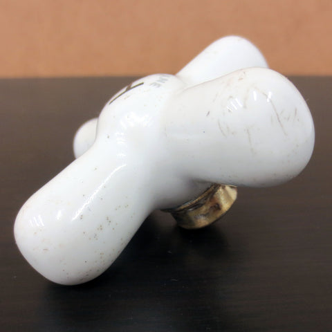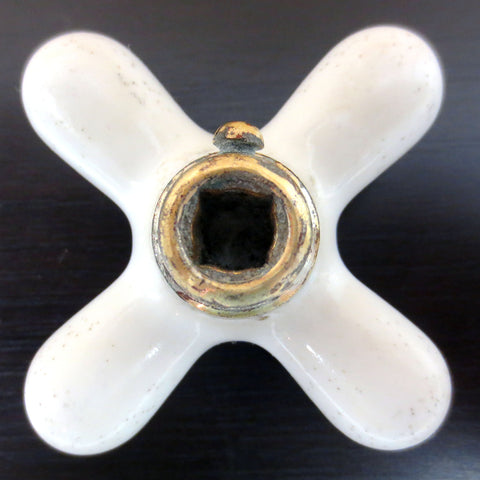 All original, porcelain in excellent condition, no cracks or chips. Antique Hot water knob signed Crane on front. Solid brass base, fits square and round rods, original brass tightening screw included. Knob measures 2 3/4 X 2 3/4 and is 1 1/4 inches deep.