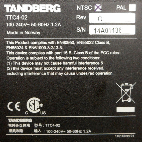 Cisco Tandberg TelePresence Teleconference Wall Mount System Telephone Model Compass MXP TTC4-02, Power Supply, Tested, Norway