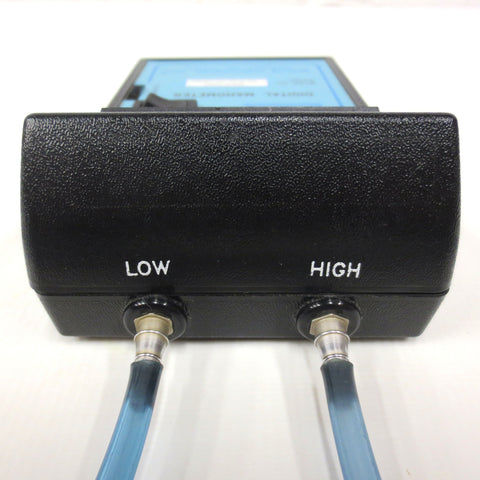 Excellent condition, fully functional, tested and certified. Dual digital manometer by Modus Instruments U.S.A, model MA2-0051. Range is approximately 0.5 in. of water. Original belt pouch, 2 tubes and a new 9 volt battery included. Ideal instrument for HVAC test and balance work, furnace draft measurement, clean room or paint spray booth differential pressure measurement.