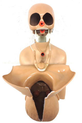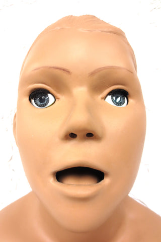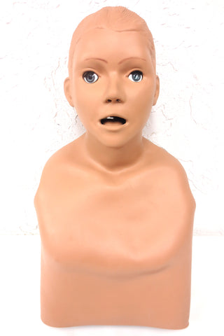 Excellent condition, includes head, torso, full cover, eyes, tongue and red connectors for tubing. Adult CPR manikin by Gaumard Scientific, Sima model. Measures 2 feet tall, 13 inches wide, 10 inches deep. Rubber cover is easy to remove and to put back on with pre installed velcros. Surplus from a medical center in Montreal, Quebec, Canada. Weighs 8 pounds.