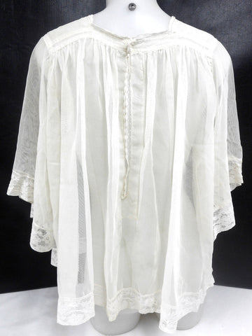 Authentic altar boys and girls lace blouse from the 1940's. Excellent condition, no stains, no tears. Professionally cleaned. Very fine, handmade. From a closed down church in Montreal, Quebec, Canada. Measures 21 inches long, 13 in shoulder to shoulder and has 12 in long sleeves. Loose and wide waist. Beautiful see through women's blouse for a cool night out, costume party, religious ceremonies and choir concerts. More measurements available upon request.