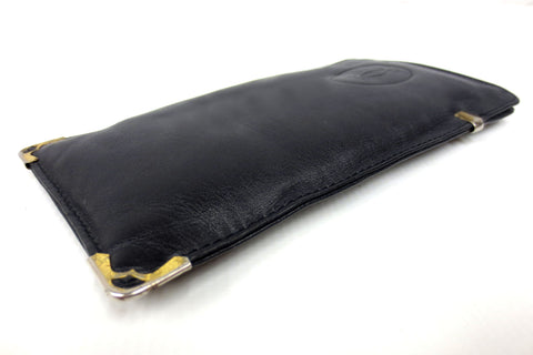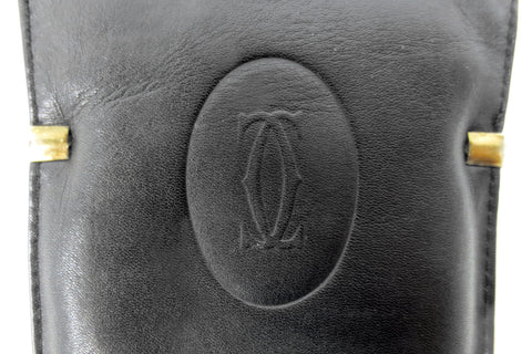 Mint condition, very clean, signed Cartier Paris. Leather embossed with the Cartier emblem. High quality black and souple leather with gold details. Sturdy and well padded. Measures 6 3/4 X 3 1/2 inches.