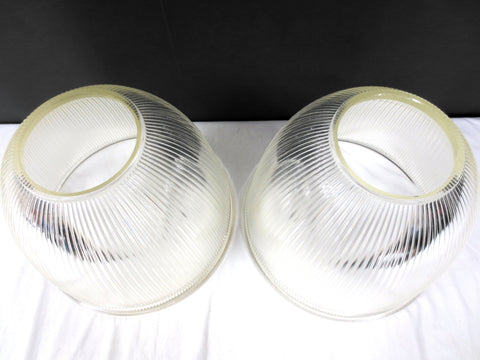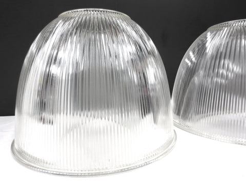 Holophane Glass Light Shades Fixtures 15" Dia, Rippled Glass Domes, Industrial