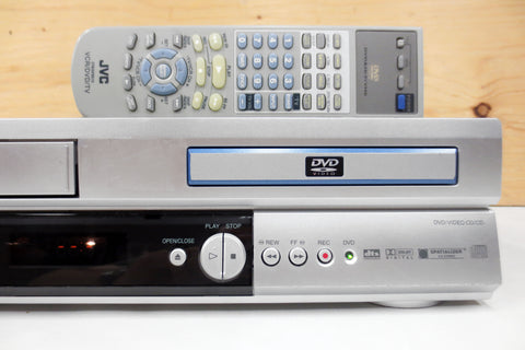 Excellent working condition, original 076D0FB010 remote and electronic user manual included. High quality DVD player with Hi-Fi Stereo Video Cassette Recorder (VCR) model HR-XVC1U by JVC. Very clean, light surface scratches. Acquired at auction from the Canadian Space Agency.