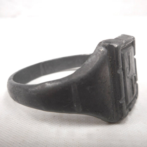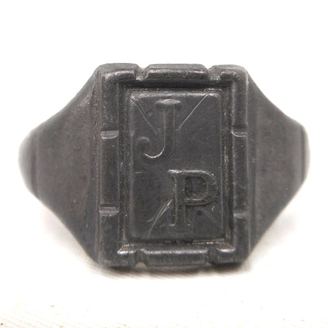 Perfect condition, rare jewelry maker salesman sample. Was used as a model and store advertising. Embossed JP initials, heavy metal. Has a 1 3/8 inches diameter and signet plate is 3/4 X 1/2 inches.