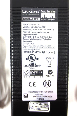 Linksys Cisco AC Adapter Charger Model FSP120-AFB, P/N 0432-00VE000, 48V, 2.5A