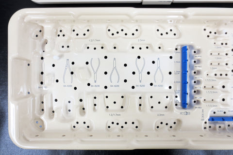 Excellent condition, sturdy and very clean, no cracks. Surgical tool case signed W. Lorenz, model Small Fragment Titanium System 1.2mm, 1.7mm, 2.3mm. Measures 22 X 10 1/2 X 3 inches, weighs 1.6 kg. Surgical tools not included. The complete set is worth over 2000 USD.