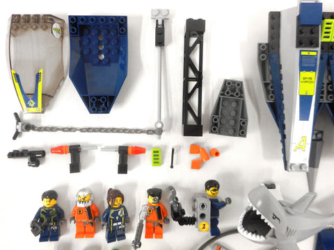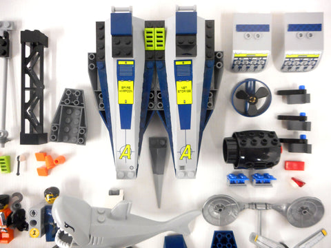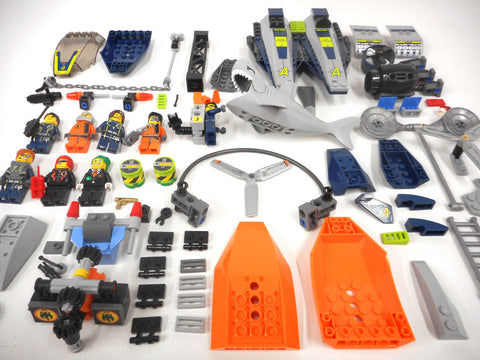 All parts are in excellent condition, very clean, none broken. The 8 minifigures have their official parts. Pieces have all been identified to the following sets: Lego Agents Speed Boat Rescue 8633 (5 minifigures, 1 shark, 93 pieces) and Lego River Heist 8968 (3 minifigures, 83 pieces). Very useful parts to complete your lego sets and builds.