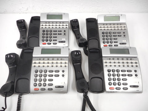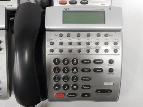 Clean, tested, ready to install. From a closed call center. Includes 4 high quality 16 lines office phones signed NEC Dterm80 models DTH-16D-1 and 2. Multiple functions, collapsible LCD digital screens. All phones come with an adjustable base and a phone cord. No power supply, basic DC 27V required. Dimensions: 4 X 9 X 8 inches. See our other high quality equipment for stores and small businesses.