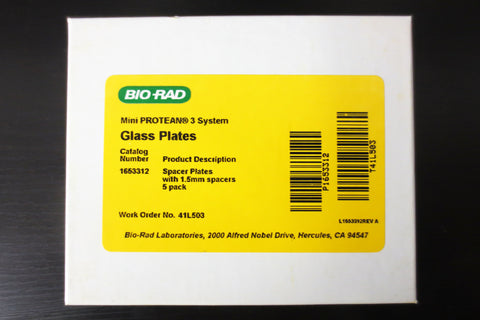 New pack of 5 Bio-Rad glass spacer plates with 1.5mm spacers, model 1653312 for Bio-Rad Mini-Protean 3 electrophoresis gel casting system. Surplus from Canada's National Research Council.