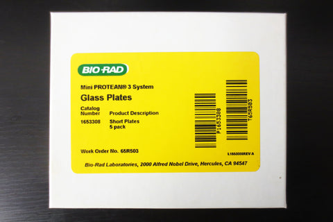 New pack of 5 Bio-Rad glass short plates, model 1653308 for Bio-Rad Mini-Protean 3 electrophoresis gel casting system. Surplus from Canada's National Research Council.