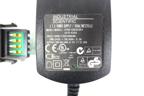New power supply by Industrial Scientific, model CPS012062035 / 1810-6393. Comes with a type A plug adapter. No box. Output: 6.2VDC, 0.35A. Input: 100-240V, 50/60Hz, 0.3A. For use with several Industrial Scientific instruments including the M40 Multi-Gas Detector/Monitor. Industrial surplus from a closed plant in Montreal (Quebec, Canada).
