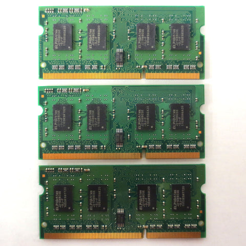 New, tested, guaranteed 30 days. 3 X 2GB memory RAM by Kingston for Toshiba. Specifications: KTT1066D3S/2G DDR3 1066MHz PC3-8500 204 Pin SODIMM for Toshiba.