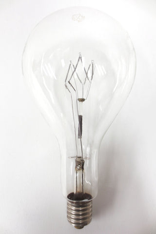 New 1500 Watts large industrial light bulb 6 1/4" diameter, 13" tall. Marked Anti-Choc, Rough Service, 130 Volts, ANSI S52, Mogul base. Clear, long life and high efficiency. Surplus from an industrial light fixture distributor in Montreal (Quebec, Canada).