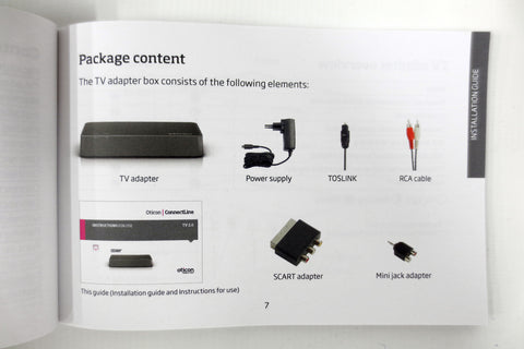 New, open box, complete with instructions, warranty and all its original accessories and cables. TV adapter for hearing aids by Opticon ConnectLine, Model TV 2.0. Ready to use. Unused surplus from a medical center in Montreal (Quebec, Canada).