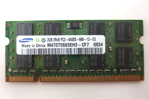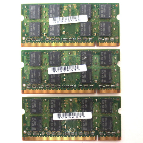New, tested, guaranteed 30 days. 3 X 2GB memory SDRAM by Samsung. Specifications: DDR2, 800MHz, SODIMM, PC2-6400S-666-12-E3, M470T5663EH3-CF7.