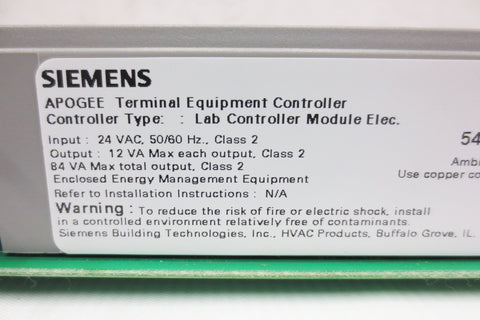 New Siemens Apogee Terminal Equipment controller 546-00363A, 24 VAC, Lab Controller