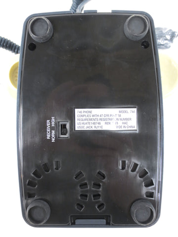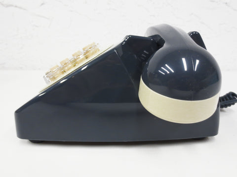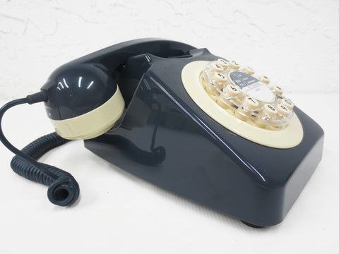 New, never used, complete in its original box. Perfect condition, cool blue grey color. Practical push button dial based on the original rotary phone design. Working replica of the 1967 British telephone model 746 launched by the General Post Office. Includes its unopened manual, phone wire and all original wrappers. Plugs into a standard phone socket, high and lo ringer switch.