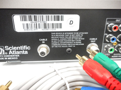 Never used, no box, activation ready. This TV cable recorder has a 320GB working hard drive and an HDMI output. Includes its original remote, HDMI cable, original power cord, video component and audio composite cables. Has all its original manufacturer's tags and serials. Manufactured by Scientific Atlanta.