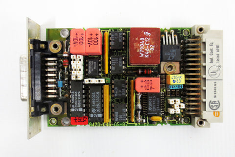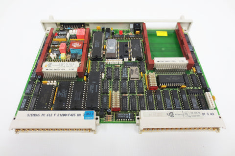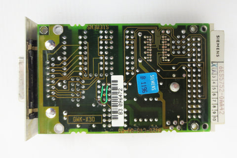 Tested, working, refurbished, very clean. Siemens Simatic S5, CP 524 communications processor board for PLC, Minicomputer. Model 6ES5524-3UA15, C79040-A32-C634-08-85. It includes a Siemens Simatic S5 interface module 6ES5752-0AA42, 48-pin/15-pin, also in excellent condition. Surplus industrial control system card from a closing plant in Quebec, Canada. Internal ref. code HX3.