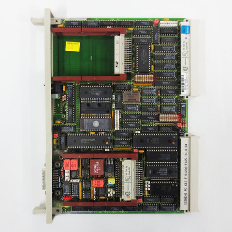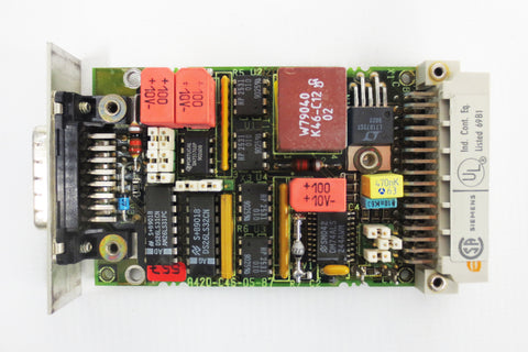 Tested, working, refurbished, very clean. Siemens Simatic S5, CP 524 communications processor board for PLC, Minicomputer. Model 6ES5524-3UA15, C79040-A32-C634-05-85. It includes a Siemens Simatic S5 interface module 6ES5752-0AA42, 48-pin/15-pin, also in excellent condition. Surplus industrial control system card from a closing plant in Quebec, Canada. Internal ref. code HX4.