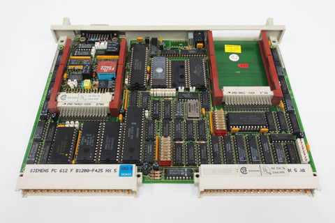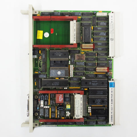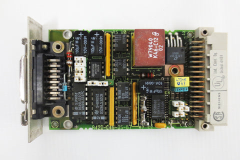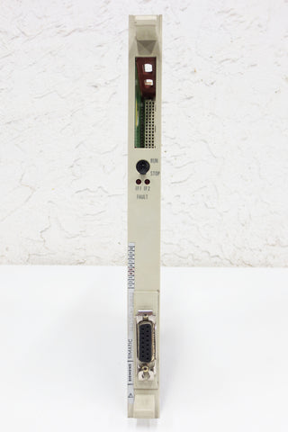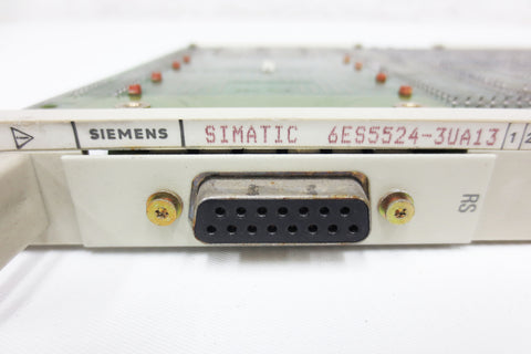 Tested, working, refurbished, very clean. Siemens Simatic S5, CP 524 communications processor board for PLC, Minicomputer. Model 6ES5524-3UA15, C79040-A32-C634-05-85. It includes a Siemens Simatic S5 interface module 6ES5752-0AA42, 48-pin/15-pin, also in excellent condition. Surplus industrial control system card from a closing plant in Quebec, Canada. Internal ref. code HX5.