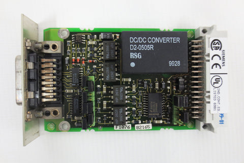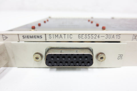 Tested, working, refurbished, very clean. Siemens Simatic S5, CP 524 communications processor board for AG, Minicomputer. Model 6ES5524-3UA15, C79040-A7422-C339-02-85. It includes a Siemens Simatic S5 interface module 6ES5752-0AA43, 48-pin/15-pin, also in excellent condition. Surplus industrial control system card from a closing plant in Quebec, Canada.