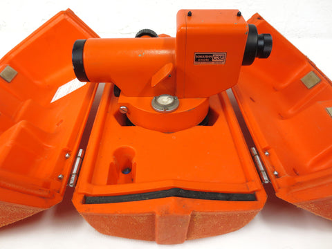 Excellent condition, fully functional, very clean. This is an automatic level by Sokkisha, Made in Japan. Model C3E, D10346, serial 93427. Tool is complete, original heavy duty case, no accessories. No broken or missing parts, light surface wear. Telescope specifications: Magnification 22X, Objective apertute 30mm, Minimum focusing distance 0.3m, Resolving Power 4", Field of view (at 100m) 1 degree 25' (2.5M). Excellent tool for home and industrial projects, great design.