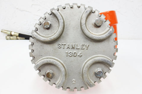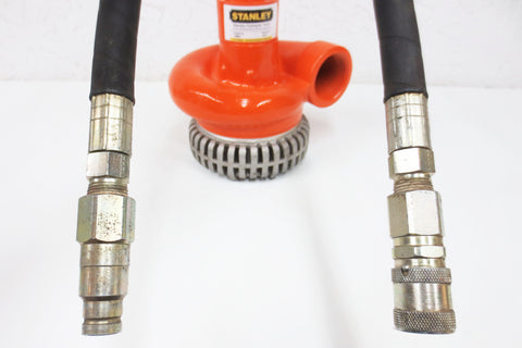 Excellent working condition, serviced and very clean. Heavy duty hydraulic water and trash pump by Stanley. Model SM23-B, serial 4375, 2 1/2 inches pipe discharge. Includes 2 Aeroquip FD49 series 1/2 inch quick couplers (in and out flow) installed on 2 Aeroquip Hi-Implulse 2781-8 tubes (total length 26 inches each). Specifications: Runs dry without damage, integral motor, 1000-2000 psi pressure, 375 gpm capacity, 8-15 gpm flow range and -8 SAE O-ring porting. Acquired from Canada National Defense.