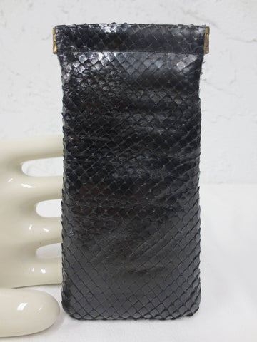 Excellent condition, genuine black snake skin, padded interior. From the 1960's, very clean, natural feel. Sturdy metal hinge on each side, keeps glasses safe. Measures 6.5 X 3 inches. Can also be used for necklaces, watches and money.