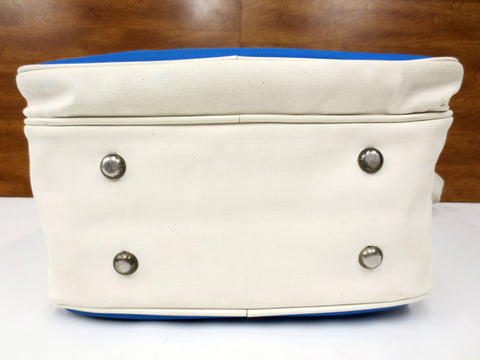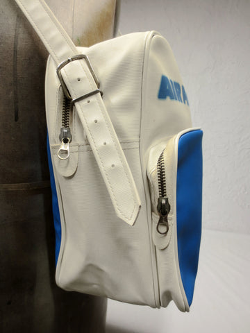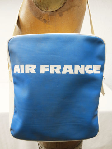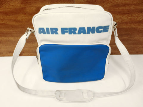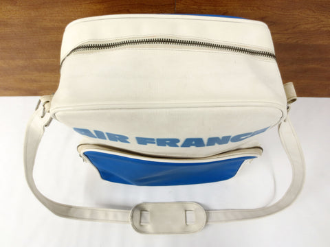 Excellent condition, very clean, original 1970's Air France airline carry on bag. No tears, no stains. Long adjustable shoulder strap, 2 zipped compartments, sturdy vinyle. Foldable hard bottom. Bag stands on its on or 4 metal studs. Measures 12 X 12 X 6 inches.
