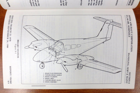 Mint condition, sturdy binding, no missing pages. Pilots' complete information manual dated March 23, 1978, on the Piper Seminole PA-44-180 airplane. Published by the Piper Aircraft Corporation. Book measures 5 3/8 X 8 3/8 and has over 200 pages. 80+ illustrations and charts.