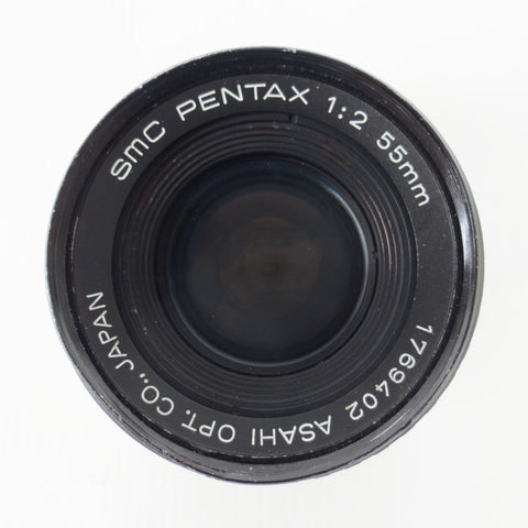 Excellent condition, fully functional, clean lens. 1980's Pentax SMC prime lens, 55mm, 1:2, serial 1769402. For Pentax Asahi K1000 35mm SLR film cameras.