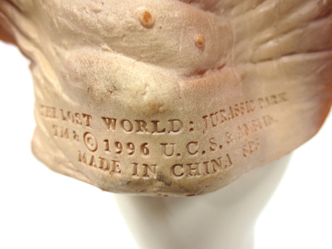 Screams loudly, eyes and teeth glow in the dark. 12 inches tall. Excellent condition, very clean, colors intact.  Works with three LR44 batteries, brand new installed. Thick and souple rubber, you can open and close its mouth, make it scream by pressing the button inside, as well as move its neck. Signed "The Lost World Jurassic Park TM & C 1996 U.C.S. & Amblien, Made in China Sp3".